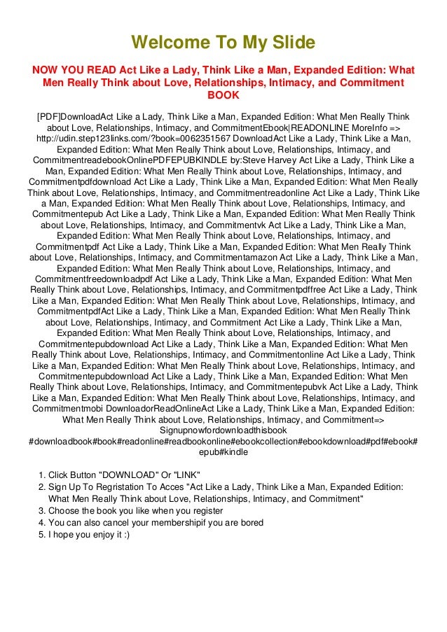 Available in pdf, epub and kindle. Act like a lady, think like a man pdf. If you're dating, and you want to find out how to take it to another level, this book act like a lady ,think like a man contain everything you need to know about men and. Read, write reviews and more. Get protected today and get your 70% discount.