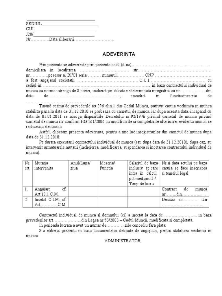 Aceasta adeverinta pentru somaj ( nu adeverinta de vechime si nici cea pentru sporuri si grupa de munca) nu este completata de firma la care salariatul a avut cim pe perioada determinata ? Vechimea in munca, vechime in munca, calculul vechimii in munca. Intrebarea este daca aceasta perioada reprezinta vechime in munca pentru calculul anilor la pensie.