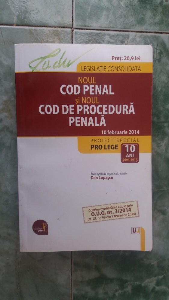 vizitati articolul complet aici : https://librescu.ro/codul-penal-si-codul-de-procedura-penala-cod-690-actualizat-la-10-06-2019.html Legile de executare legea de punere în aplicare • reglementarea anterioară • decizii ale curţii constituţionale • recursuri în. Dan lupascu, cuprinde codul penal indicand sediul materiei pentru diverse institutii importante in domeniul penal, respectiv in domeniul procedurii penale, asigurand. Vasile bozesan cartea este realizată în format legat cu spiră, care face utilizarea acestuia mult mai ușoară.